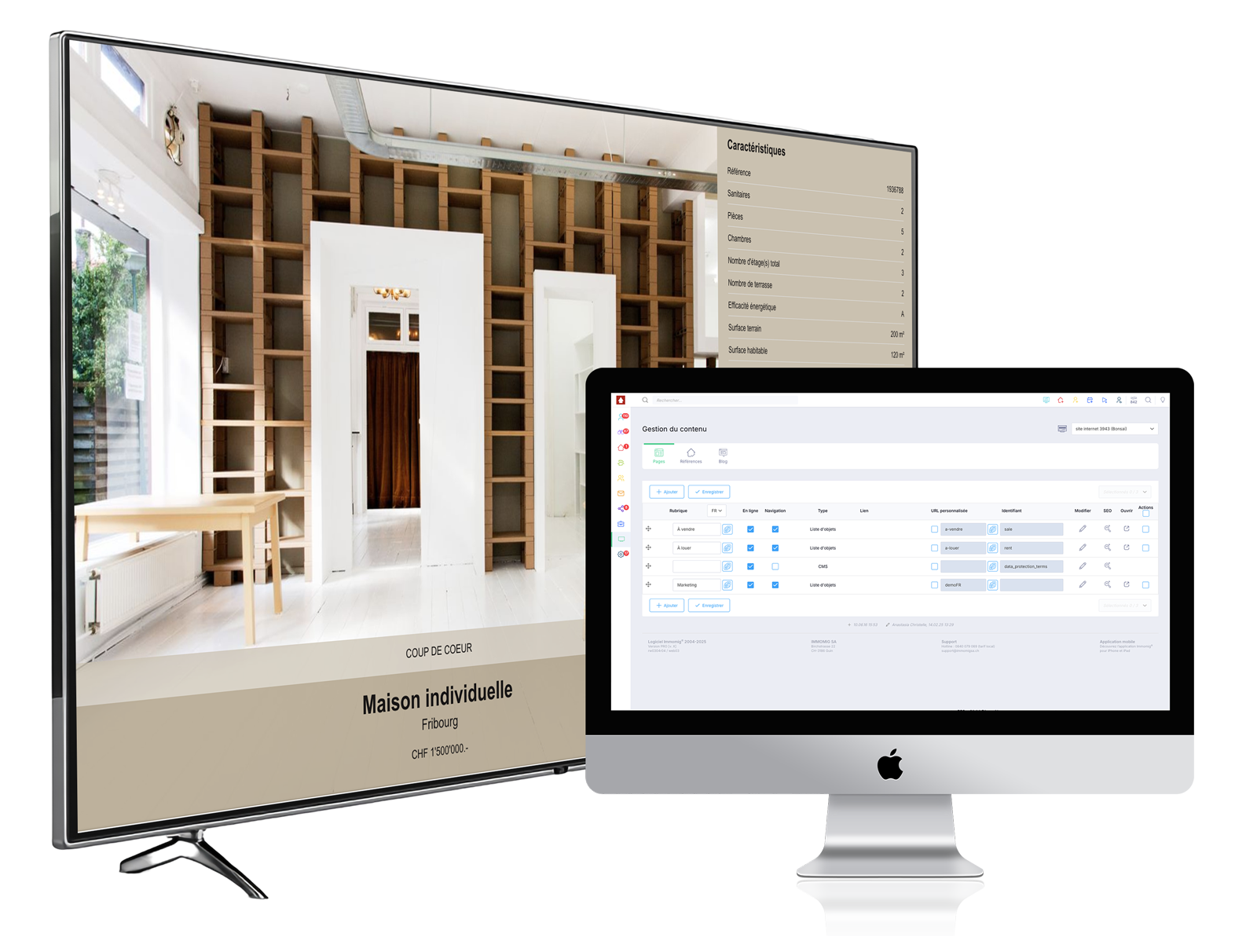- la possibilité de créer plusieurs liens de diaporamas supplémentaires directement dans le CMS Immomig®, afin d’adapter vos présentations selon vos besoins (vitrine, accueil, salon, etc.).